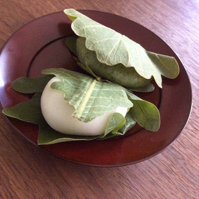 Sweets today : kashiwa Mochi With Anko (sweet bean paste) It is reasonably sweet not too sweet I like it