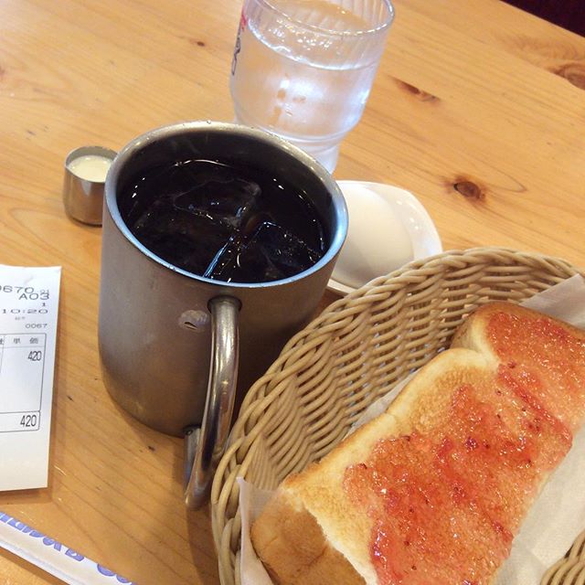 Morning coffee with toast 420 yen ๐Ÿ—พ๐Ÿ—ปโ˜บ๏ธto be ready for torturing hot summer in Tokyo ๐Ÿ˜ช๐Ÿ—ผ๐Ÿ—พ๐ŸŒŠ