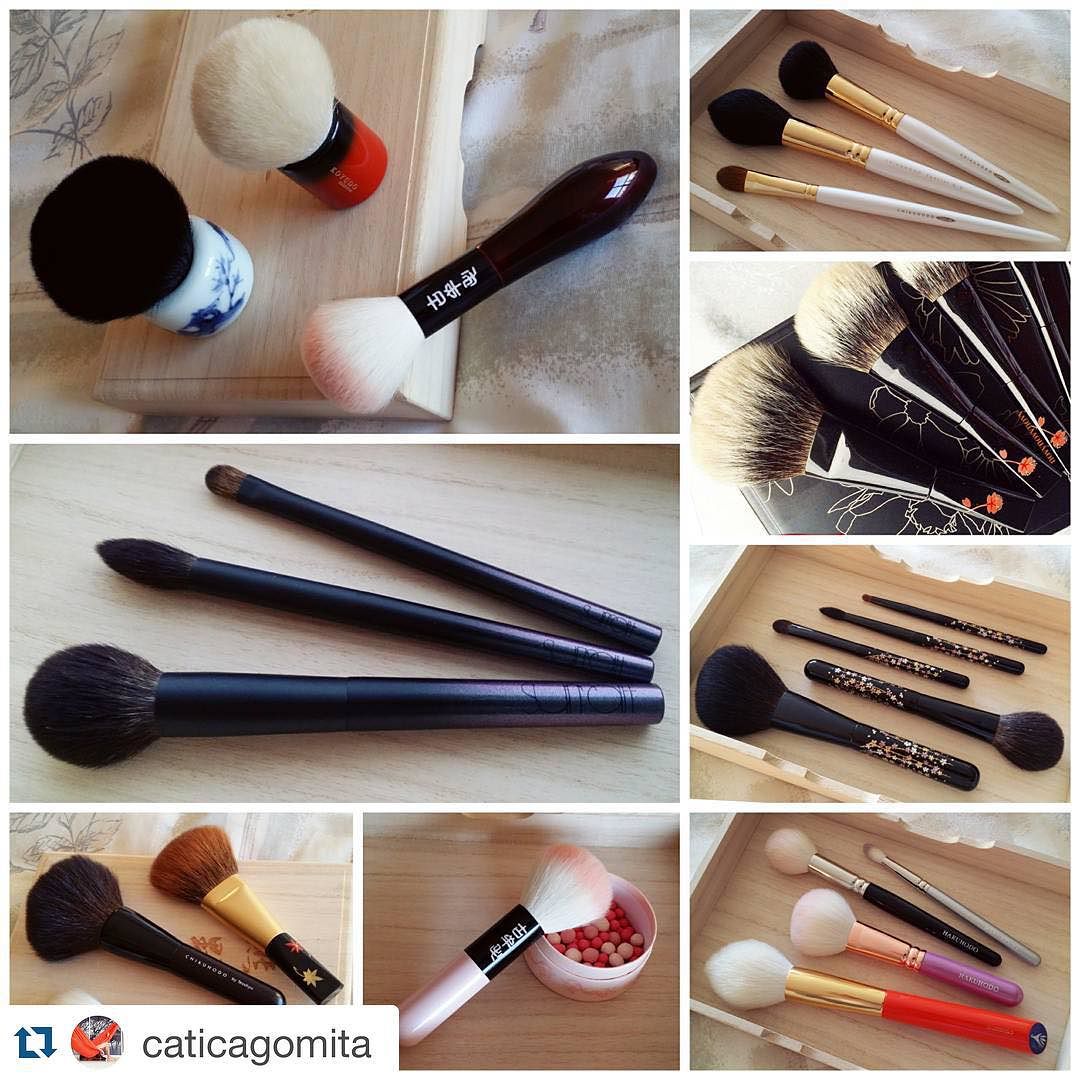 #Repost @caticagomita with @repostapp. ・・・ My friend, brush expert extraordinaire, and all around wonderful human @sweetmakeuptemptations has tagged me to post my own 🏆2015 Brush Awards🏆so here it goes! 🍬Brush Set of the year – I rarely buy full brush sets, so this one was easy: #Chikuhodo x #Beautylish Sakura collection. After plenty of use I continue to be extremely pleased with all 5 brushes, even the weirdly shaped crease brush which, in fairness, does get used less than the other 4. Comparing to similarly priced brushes in my collection, these stand out; the pretty Sakura print is just the cherry on top. 🍬Brush Discovery of the year – #SurrattBeauty, a bunch of sexy mofos. The cheek brush is possibly my favourite cheek brush to date. 🍬Best Performance – I cheated and put in 2 pics for this one. First, #Hakuhodo J series. The selection is massive and possibly overwhelming at first, but you’ll find a brush for every possible function and they really are THAT GOOD. The ones pictured here (SJ103 which is just J103 with a fancy handle, J110, J5521, J142) have become extensions of my hand, at this point. Chikuhodo GSN 04, 08, Special G-9 (last one was a gift from some very kind friends 😱 I cannot thank you enough). Workhorses. Utterly underrated. If I were more reasonable, I could live with just these 3 plus a couple of goat eye brushes from Haku’s J series. 🍬Out-of-Budget Award – #Koyudo White Canadian Squirrel brushes. This one pic I stole from @novynovynovy, clearly 😜 🍬 Craftsmanship Award – #Koyomo black Hana, #Qusavi Sometsuke Sansui, #Koyudo Lacquered kabuki. 🍬 Must-have Award – Koyomo pink series. A fraction of the cost of the more traditional Koyomo series with outstanding hair quality. This is probably THE softest goat you can get without having to also pay for a fancy collector’s handle. Just buy them. 🍬Facegasm Award – no hesitation here: Chikuhodo P-8 aka. The Beast, #Kihitsu CS large powder brush (strangely, this is so much softer than my half-matching cheek brush), and Koyudo Saibikoho cheek brush.