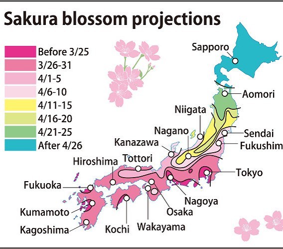 If you plan to come to Japan in the spring. Cherry seasons are slightly different in each region πŸš…