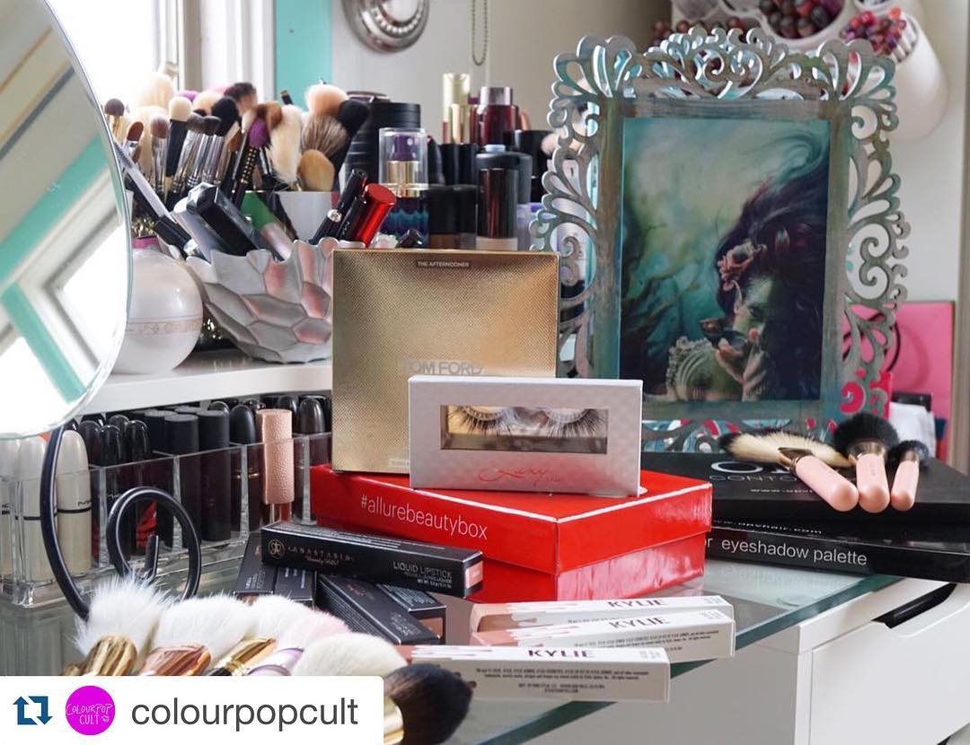 #Repost @colourpopcult with @repostapp. ・・・ Week hauls.. Some Japanese exclusive @hakuhodousa brushes procured by the awesome @fudejapan, @kyliecosmetics glosses, @anastasiabeverlyhills liquid Lippies that I want to compare to some #colourpop nudes, @luxylash lashes! (Code : COLOURPOPCULT FOR 20% off! Not an affiliate) – jumped on the bandwagon of the @allure beauty box! Thank you guys for the awesome recommendation!!!! – got the @tomford contour – blush palette (its huge wtf!). Got my custom made mermaid palette from @bitter.lace.beauty and it’s so beautiful!!!!!! And finally last but not least: an amazing set of pink brushes and the contour and shadow palette from @opvlashes (i will swatch those and review their brushes)!!! I got to organizing my vanity to accommodate my new satin Lippies closer to my hands and moving everything around and washing brushes…. PHEEWW but that said: ARE YOU WEEKEND READY!?!?!?! #colourpopcosmetics #colourpopme #SpringSummer2016 #colourpopcult #colourpopcultist