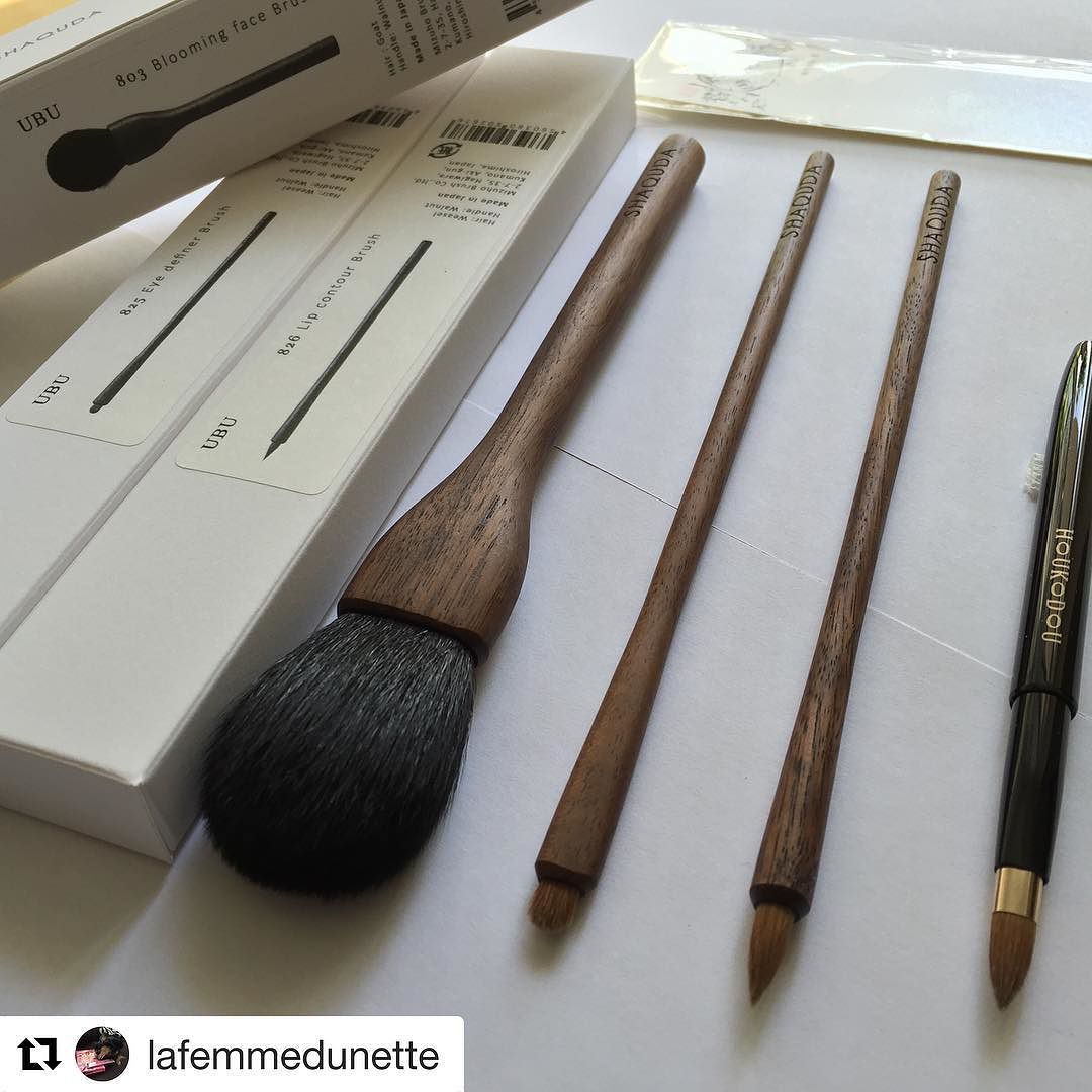 #Repost @lafemmedunette with @repostapp ・・・ Happy Friday! Thank you πŸ™πŸΌ @fudejapan for helping me get these three wonderful Shaquda UBU series brushes to add to my collection! From left to right: 803 Blooming Face Brush (goat), 825 Eye Definer Brush (weasel) and the 826 Lip Contour Brush (weasel). I also picked up this Houkodou retractable lip brush L-4 made with Kolinsky from @cdjapan_beauty that I wanted to share. Enjoy the weekend everyone πŸ’œπŸ’• @shaquda_official #shaquda #shaqudabrush #fudejapan #cdjapanbeauty #fude #kumanofude #kumano #houkodou #kolinsky #kolinskybrush #japanesecraft #sweetmakeuptemptations #smutville #makeupbrushes