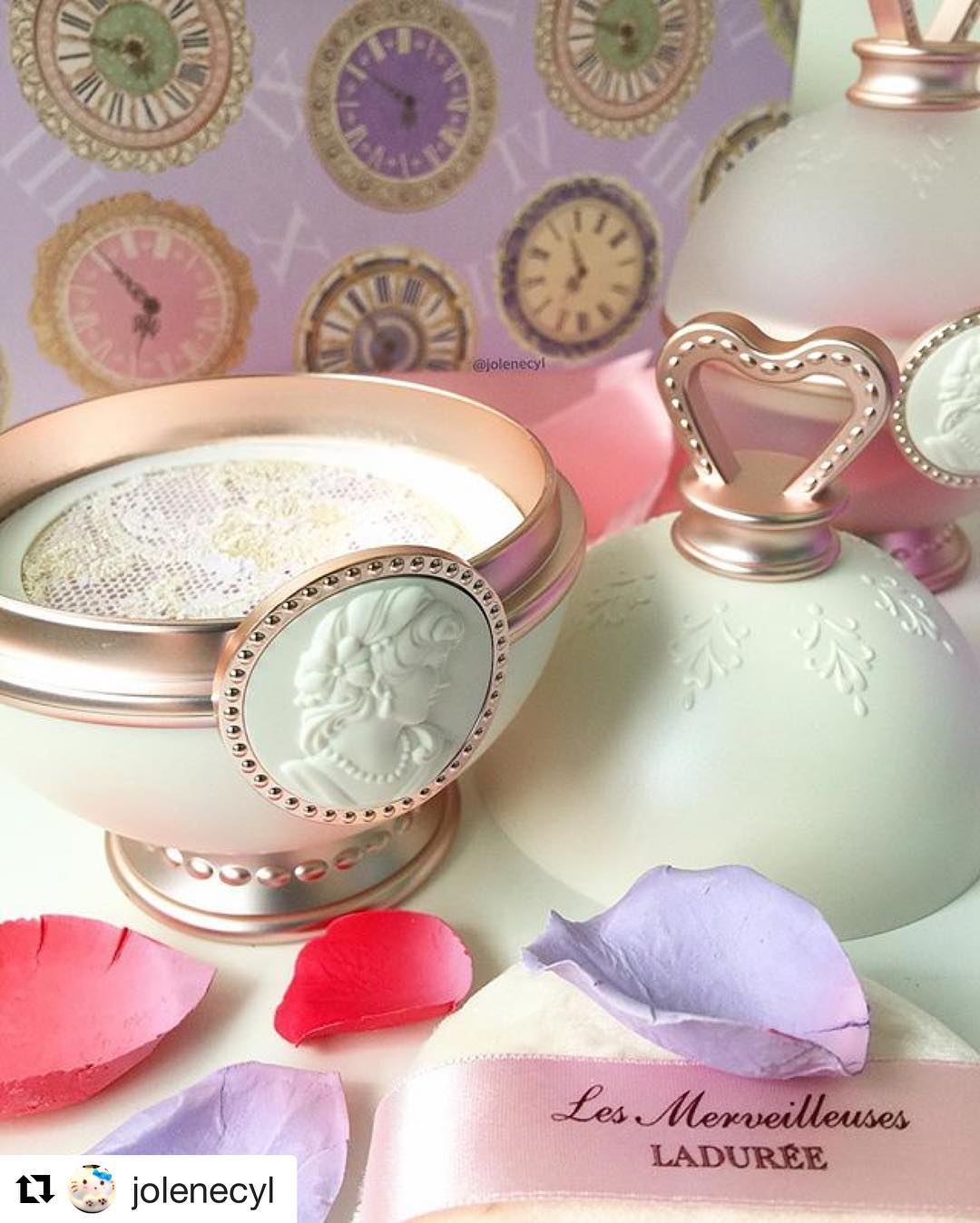 #Repost @jolenecyl with @repostapp ・・・ Les Merveilleuses De Laduree Face Powder 01, a lovely lavender shade. The rose gold trimming + white pot looks so good on the dresser 🤗!. #lmladuree# #laduree# #beautyaddict #makeupoftheday #makeupaddicts #makeupaddiction #makeuplover #makeupcollection #luxurybeauty #loosepowder