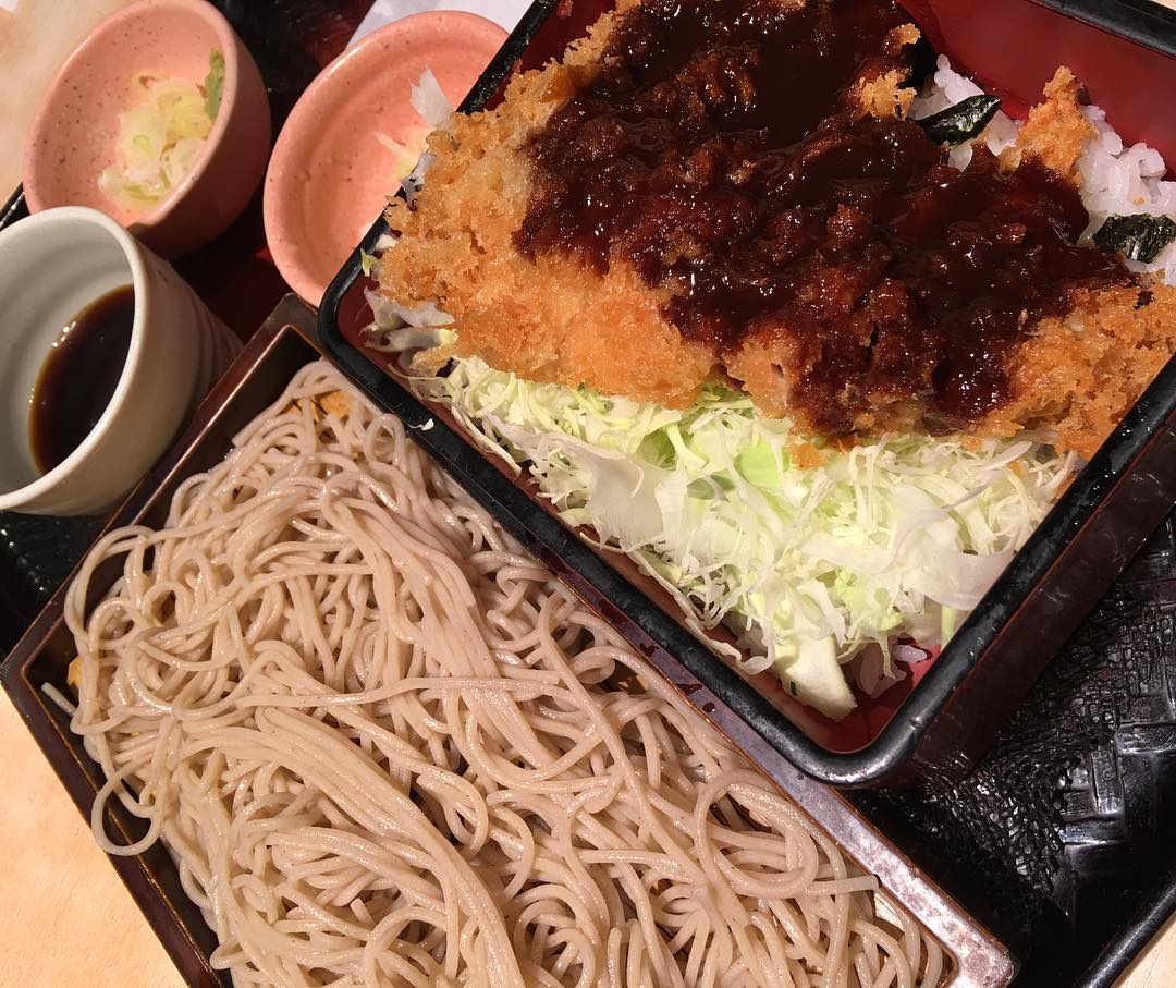 Chicken don (rice )and soba set today for lunch 898 yen We sometimes drink water used for making soba : #sobayu is healthy