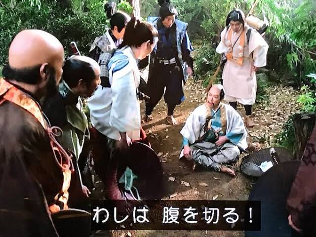Ieyasu Tokugawa, a Nobunaga’s alliance, was staying in Osaka with only a few people so he needed to run from the Akechi army. He gave up on surviving once. This picture is from a TV drama where Tokugawa decided to die.